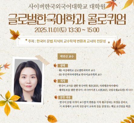 2025-2학기 일반대학원 글로벌한국어학과 온라인 특강 및 콜로퀴엄 일정 안내