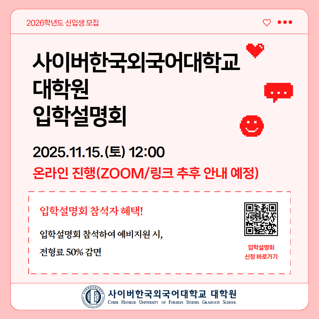 2025-2학기 일반대학원 글로벌한국어학과 온라인 특강 및 콜로퀴엄 일정 안내