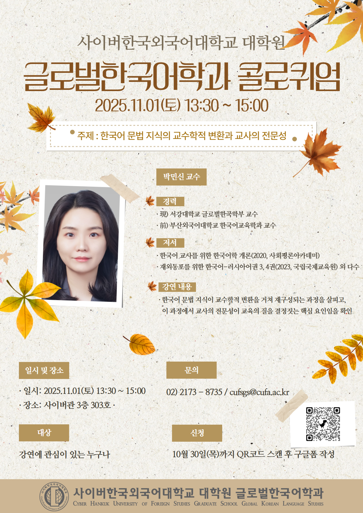 11월 1일(토) 대학원 글로벌한국어학과 콜로퀴엄 안내