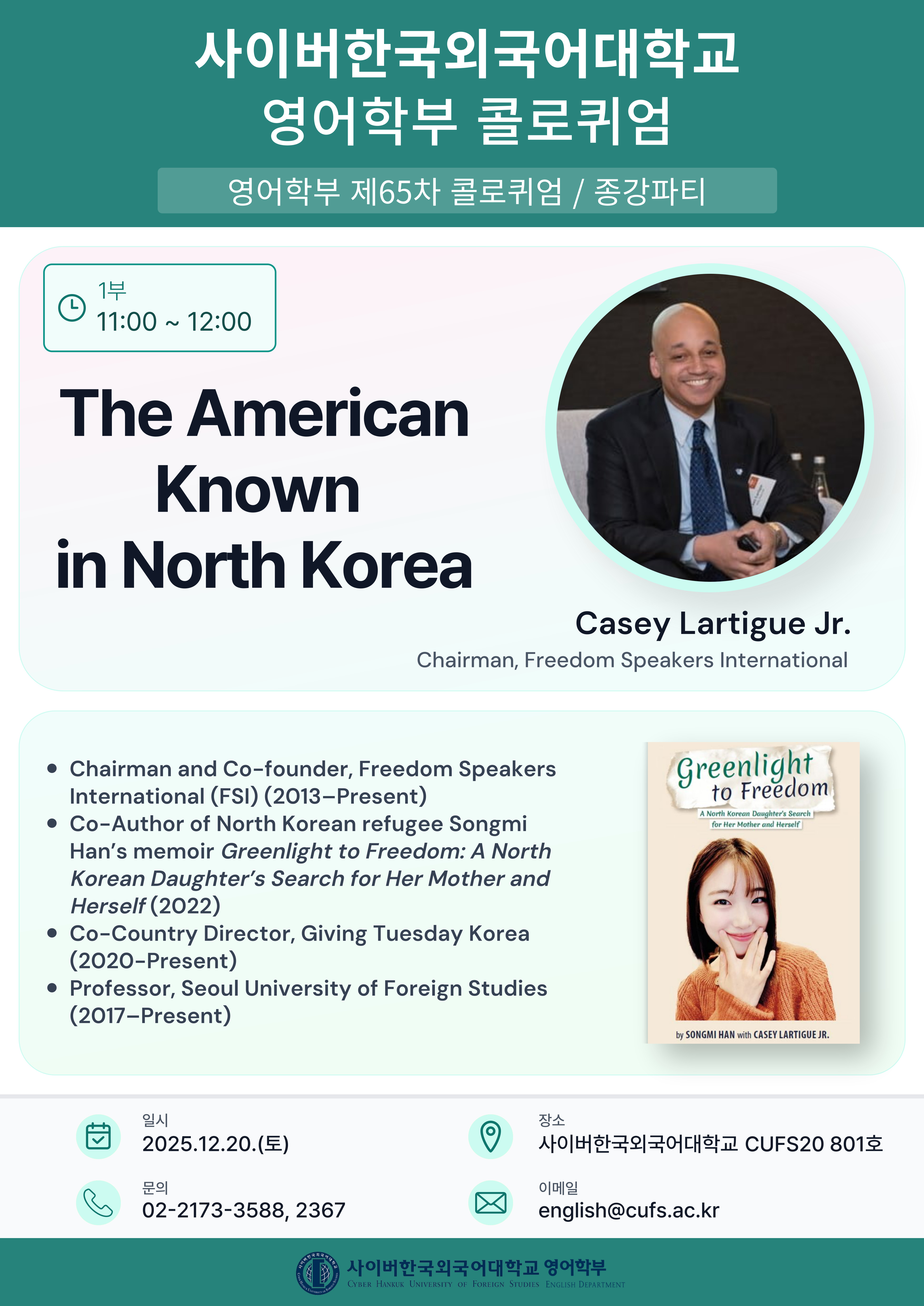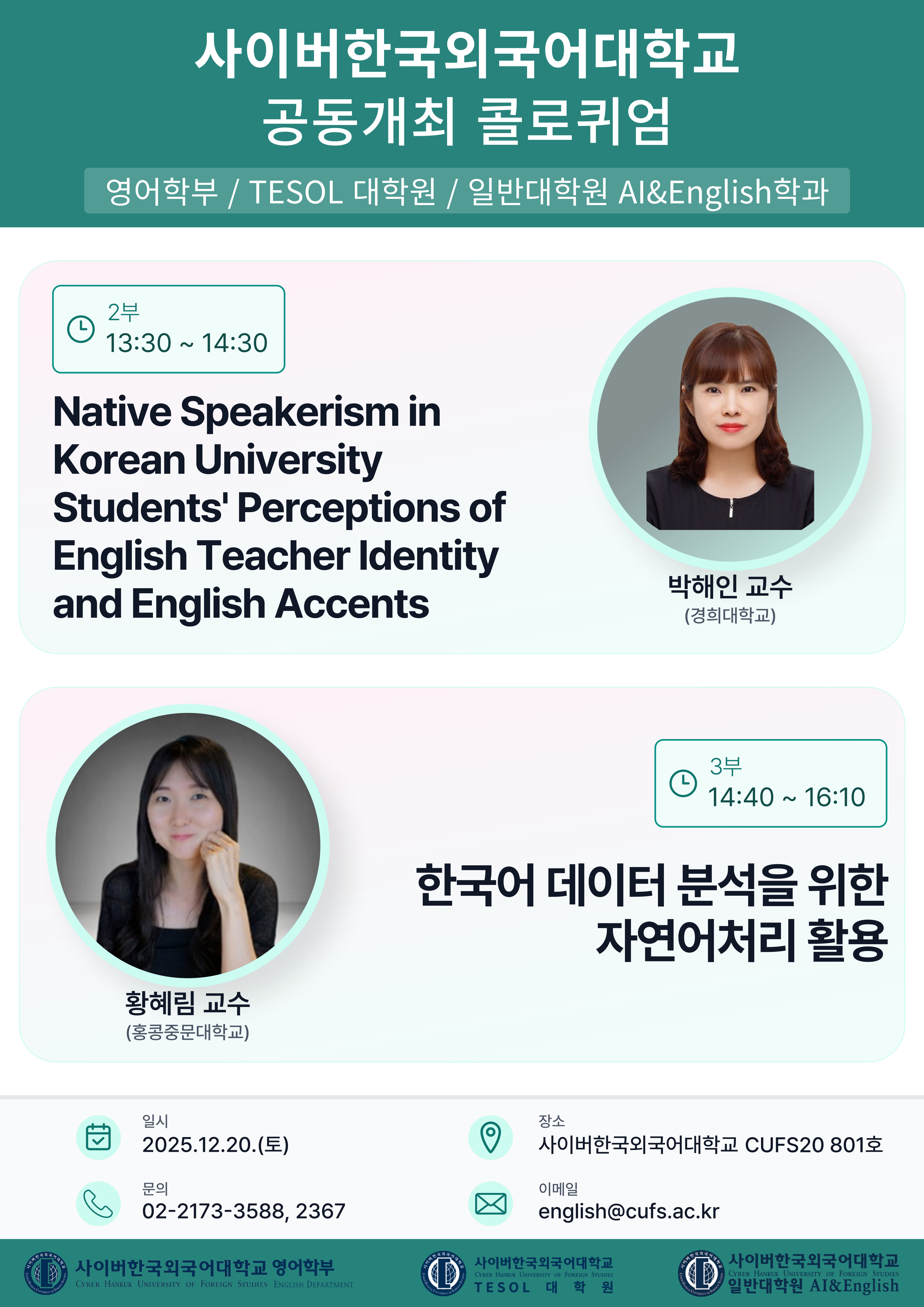 사이버한국외국어대학교 일반대학원 AI & English학과 / TESOL대학원 / 영어학부 오프라인 콜로퀴엄 안내