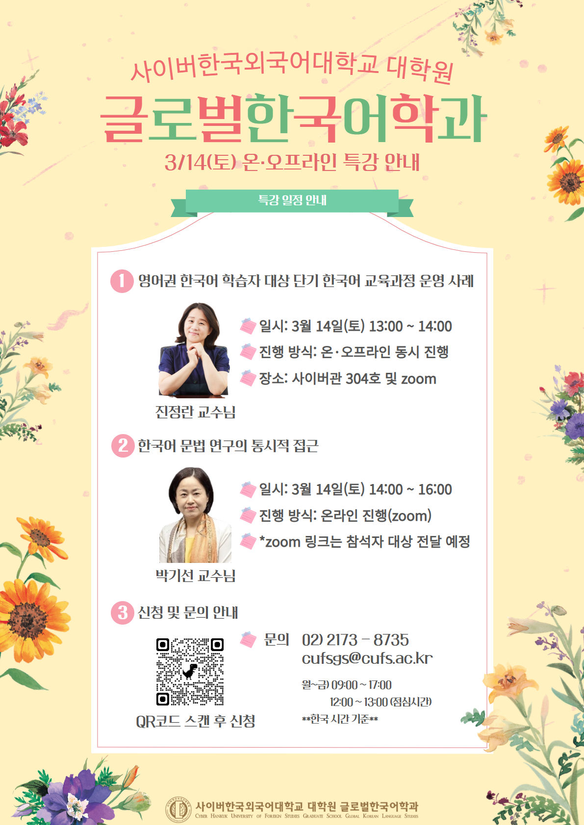 3월 14일(토) 글로벌한국어학과 온•오프라인 특강 안내