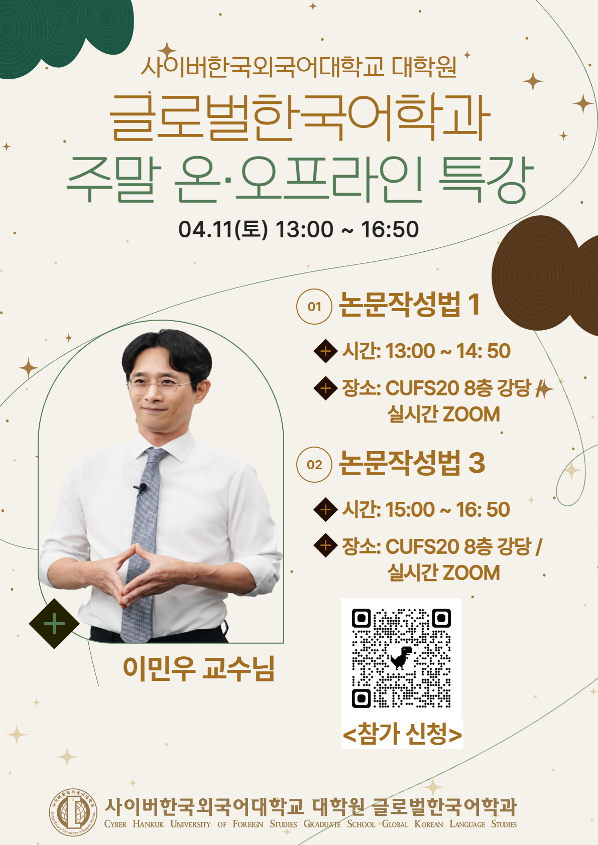 4월 11일(토) 글로벌한국어학과 온·오프라인 특강 안내